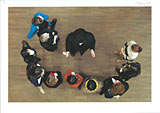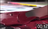 Universeel geprepareerde doeken worden 2 maal bewerkt met een verf op basis van acryl. Dit met enkel 1 mes en niet