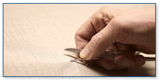 weeffoutjes. Abnormaal dikke draden en knobbeltjes worden nauwgezet weggewerkt.