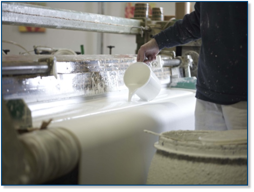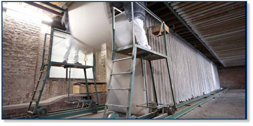 Wanneer de top laag is aangebracht, wordt het doek voor een verdere 10 dagen in de droogruimte opgehangen.