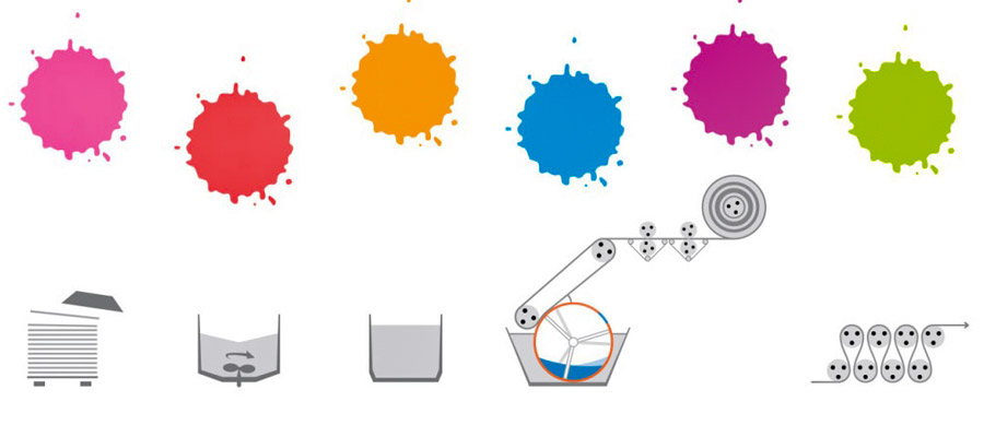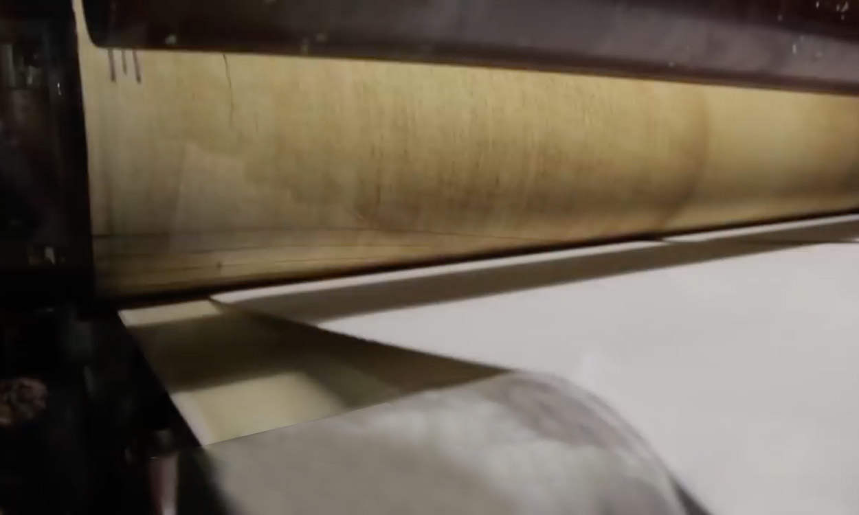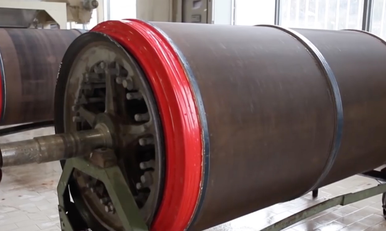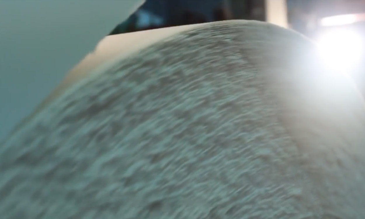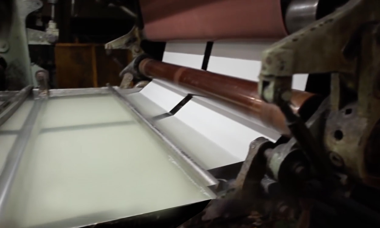 À la sortie de la presse, la bande de papier est encore humide. Un feutre de marquage donne au papier sa structure de surface. Dans le cas du papier aquarelle, il crée le grain fin et le grain torchon (texture).