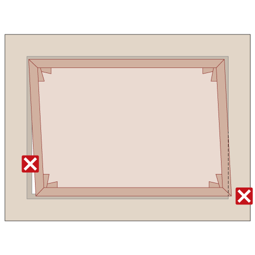 Nos cadres, carrés ou rectangulairs, sont toujours d’équerre. Si