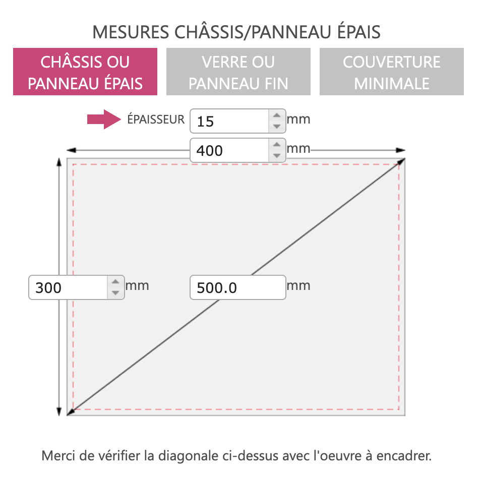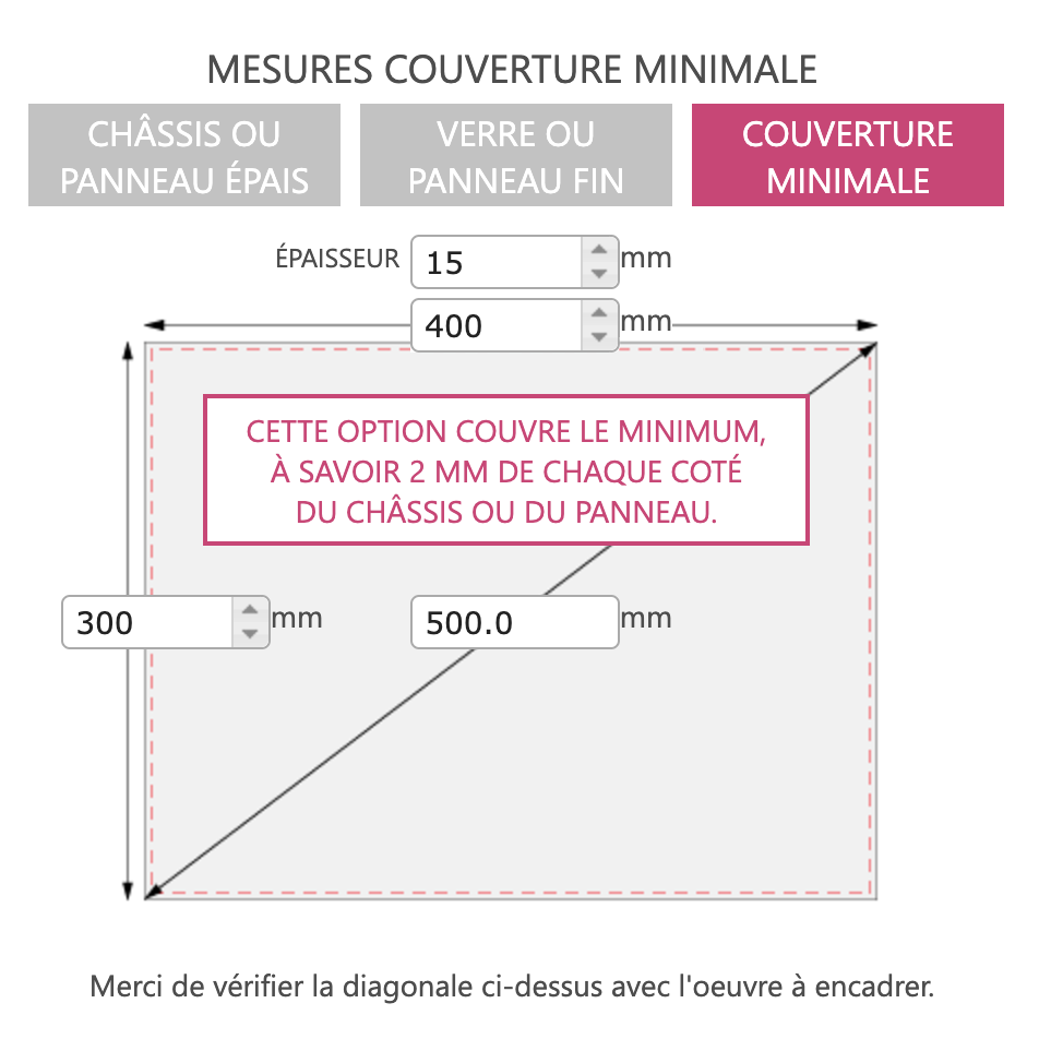Pour reduire au maximum l’emprise du cadre sur le châssis (ou le panneau), cliquez sur le bouton «Couverture