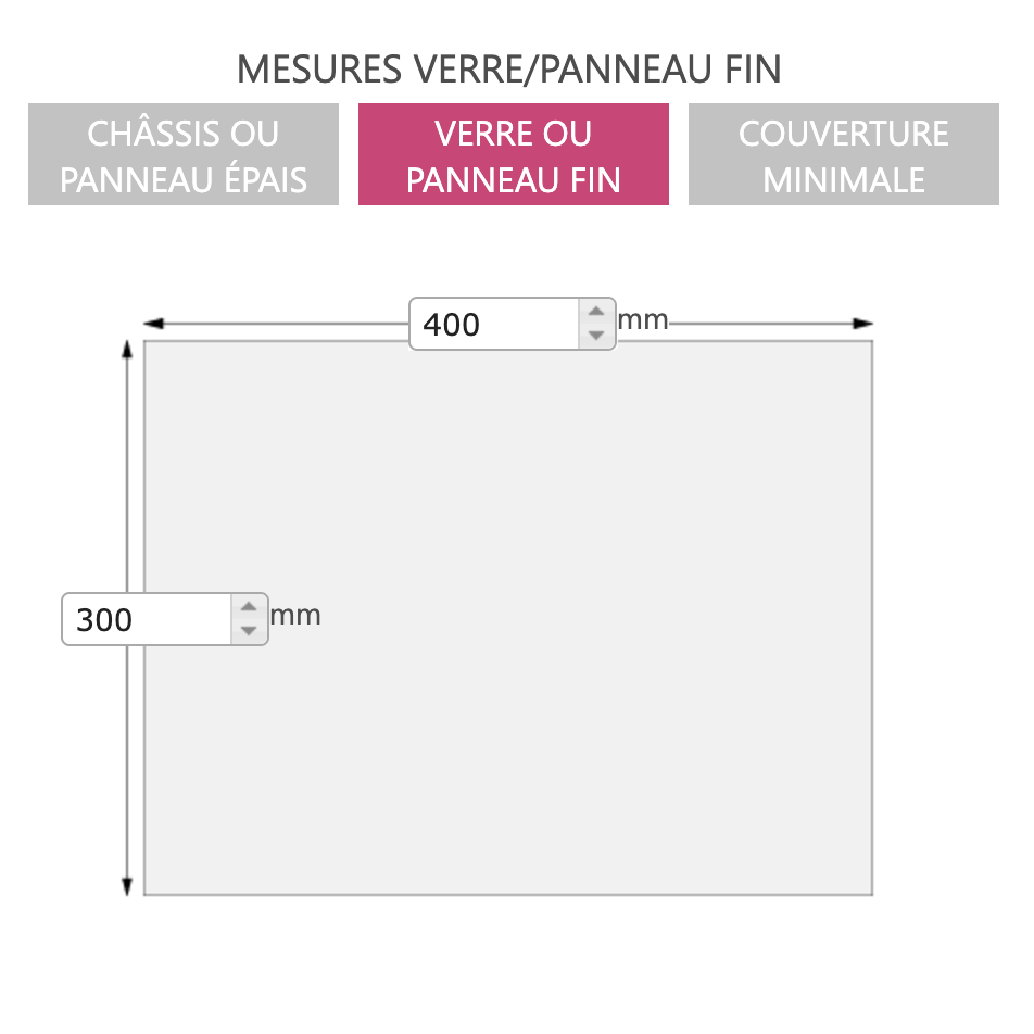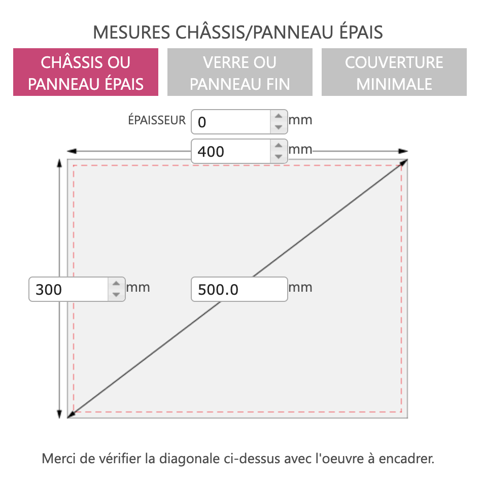 minimale». Introduisez les mesures extérieures du châssis (ou du panneau).
