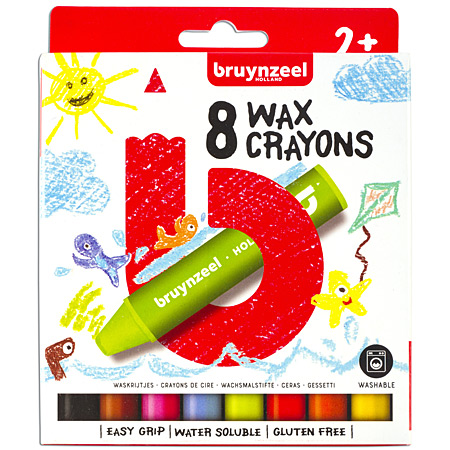 Bruynzeel Kids Wax Crayons - étui en carton - assortiment de 8 craies à la cire aquarellables
