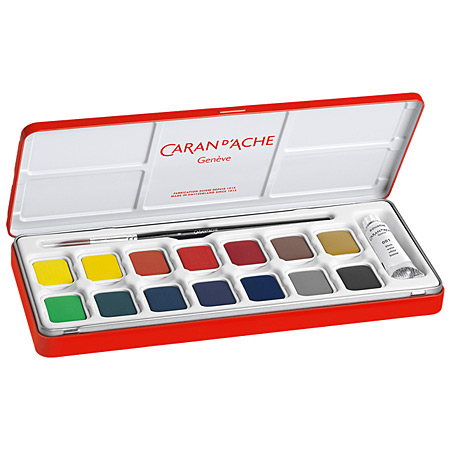 Caran d'Ache Gouache - étui en métal - 14 godets, 1 tube & 1 pinceau