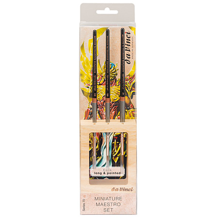 Da Vinci Miniature Maestro Set 70 - support en bois pour pinceaux & 3 pinceaux en martre série 70 (n° 2-3-4)