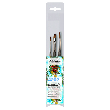 Da Vinci Colineo - Set de 3 pinceaux pour la gouache - fibres synthétiques imitation Kolinsky - assortis ronds & plat - manche court