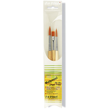 Da Vinci Set de 3 pinceaux scolaires - fibres synthétiques - assortiment ronds & plat - manche court