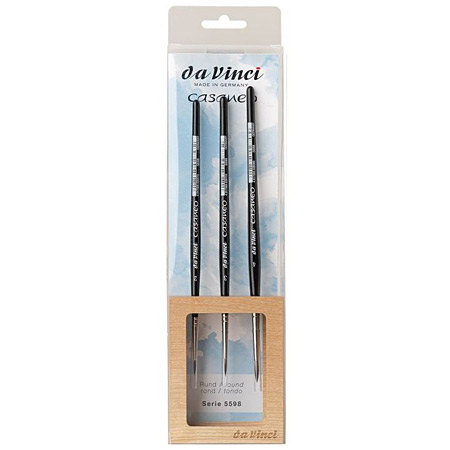 Da Vinci Casaneo - support en bois pour pinceaux & 3 pinceaux aquarelle série 5598 (n° 2-3-4)