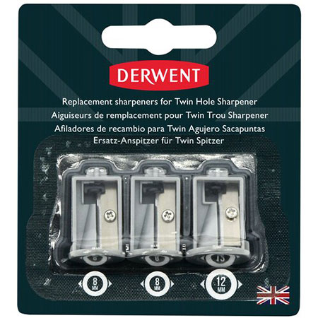 Derwent Paquet de 3 recharges avec lame pour taille-crayon électrique (2x 8mm/1x 12mm)