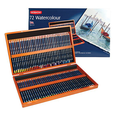 Derwent Watercolour - wooden box - 72 assorted watersoluble colour pencils