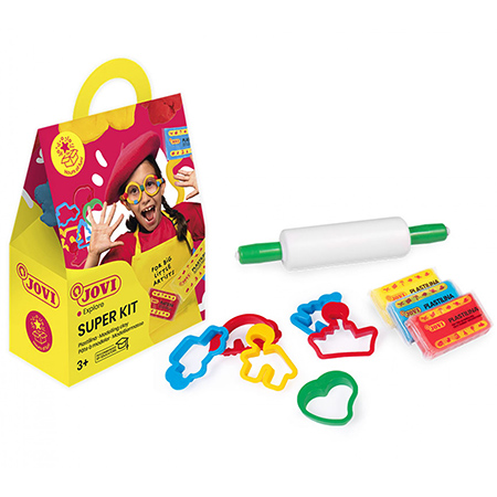 Jovi Plastilina - Super Kit - set de pâte à modeler - 3 blocs de 50g, 6 emporte-pièce & 1 rouleau