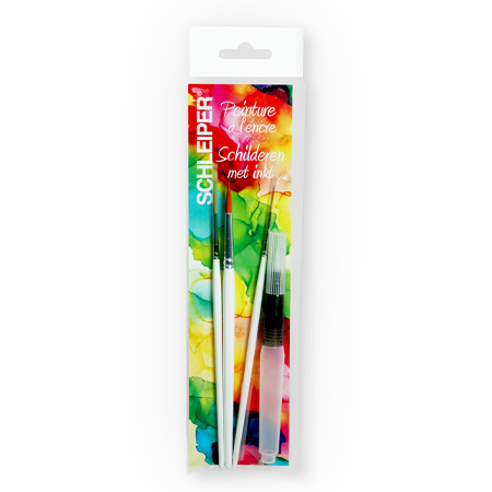 Schleiper Assortiment de 3 pinceaux & 1 pinceau à réservoir d'eau pour l'encre - manche court