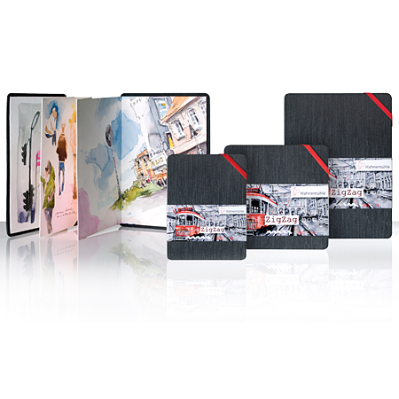 Ideal for urban sketchers and all those that love to paint and draw while being on the road. The watercolour paper features a fine-grain surface on both sides and is perfectly suited for all wet painting techniques with brush or pen. The 300gsm weight ensures stability and thanks to the surface sizing, colours flow with ease and can be lifted without any problems. The paper is eraser-resistant and masking fluid and tapes are removed residue-free. Rugged oversized book covers help to protect the content. Due to its durable cover, the ZigZag book is inured to outside influences. An eye catching red band in the upper right corner can be used to close the book securely. The rooster on the backside underlines the exclusivity of the Hahnemühle creative prowess. |