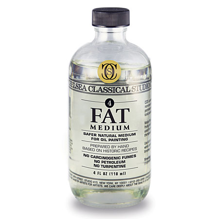 Chelsea Classical Studio Fat Medium™ (gras) est un mélange de notre huile de lin extra claire pressée à froid combinée avec notre vernis Damar à la lavande. C'est un médium relativement brillant qui sèche rapidement, résiste au jaunissement et est recommandé pour les couches de peinture finales.