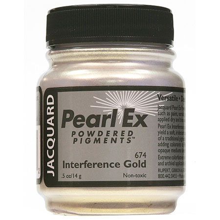 Pearl Ex est un pigment inerte et sûr qui présente une extrême solidité et stabilité des couleurs. Les différentes tailles de particules produisent des effets différents, allant d'un éclat nacré lisse à un lustre très métallique. Pearl Ex crée un effet métallique sans être un vrai métal - il ne ternira ni ne se décolorera jamais ! Remarque : les pigments en poudre Pearl Ex ont été spécifiquement développés en tant que matériau d'art. Ils ne sont PAS destinés à un usage cosmétique. TISSU/FIBRE/SURFACES Pâte polymère, encaustique, papier, plastique rétractable, cuir, verre, toile, bois, et plus encore ! Mélangez avec un liant à utiliser sur les fibres naturelles et synthétiques. |