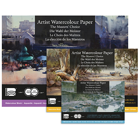 Initialement commercialisé en Australie, ce papier a fait l’objet d’un véritable engouement de la part de célèbres aquarellistes tels que Joseph Zbukvic, Alvaro Castagnet, Thomas W Schaller, Ross Patterson et David Taylor. En guise de remerciement aux artistes qui ont joué un rôle essentiel pour faire de ce papier ce qu’il est aujourd’hui, chacune des 24 couvertures présente une oeuvre différente réalisée par l’équipe de développement. Fabriqué avec du coton 100% naturel et encollé de façon traditionnelle à l’intérieur et à l’extérieur avec de la gélatine traditionnelle, le papier pour aquarelle “Le Choix des Maitres par Baohong”, possède une surface unique qui est réceptive à toutes les techniques professionnelles et délicates d’aquarelle et de lifting. |
