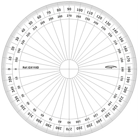 Les rapporteurs GRAPHOPLEX fabriqués en Altuglas® usiné bénéficient d'une épaisseur de 2 mm, ce qui leur procure une meilleure planéité et une durée de vie plus longue. Ils disposent à la fois des orientations horaire et trigonométrique. |
