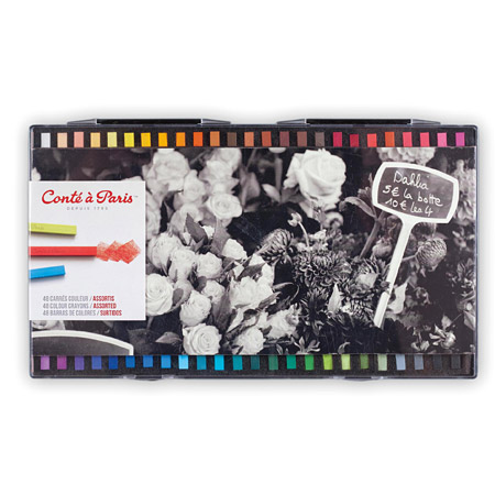 Conté à Paris Carrés Conté - plastieken etui - assortiment van kleur krijten - 48 kleuren