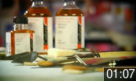 La peinture est broyée dans le triple laminoir aussi longtemps que nécessaire pour atteindre la finesse de la qualité extra-fine. Plus la répartition de pigments dans l'huile est fine, plus les couleurs sont intenses et pures.