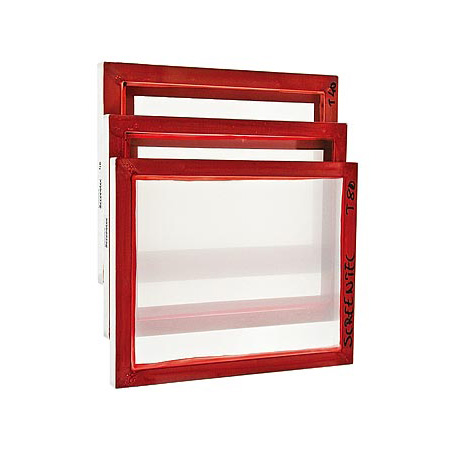 The frame is streched with a polyester monofilament mesh. At proper care the mesh will hold for coating, printing and stripping up to 100 times. Your choice of mesh is depending on what to print, and on what kind of material: For printing on-----------------Mesh fabric------------------------------40-60 fabric (with Tprint Soft)-----40-120 paper-----------------------------60-120 wood (narural, coarse)-----40-80 wood (prepared)--------------80-120 vinyl and glass---------------100-140 Size of frame is chosen from the size of your print design, remember to save some space for the squeegee and the ink ! |