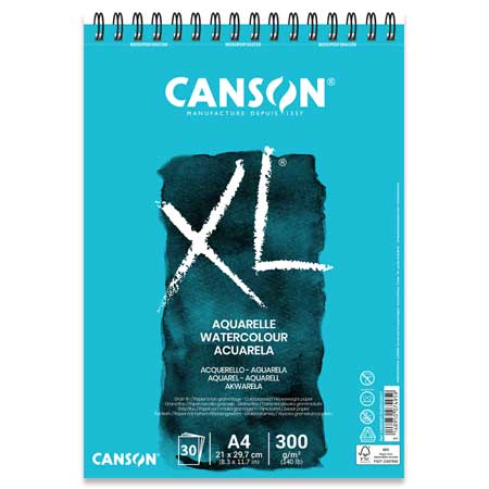 Les albums Canson XL Aquarelle contiennent 30 feuilles de papier 300g/m², dédié à l'aquarelle et aux autres techniques humides.