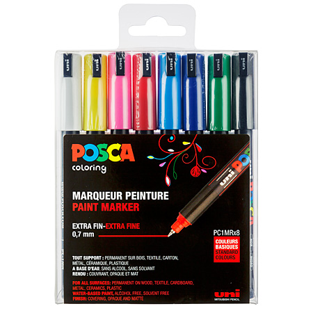 Posca PC-1MR - étui en carton - assortiment de marqueurs pointe tubulaire - 8 couleurs classiques