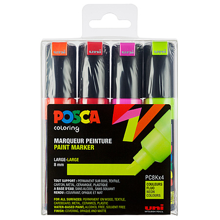 Posca PC-8K - plastic etui - assortiment van markers met schuine brede punt