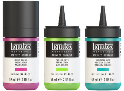 Iets vloeibaarder van consistentie dan gewone acrylverf. Zowel