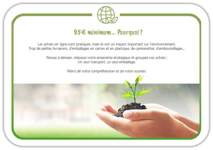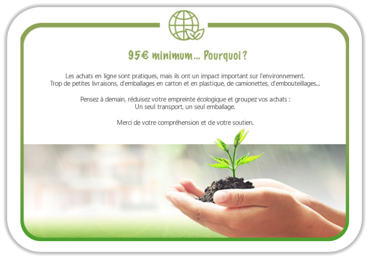 La commande d’articles sur notre WEBSHOP est possible dès 95€ d’achat.