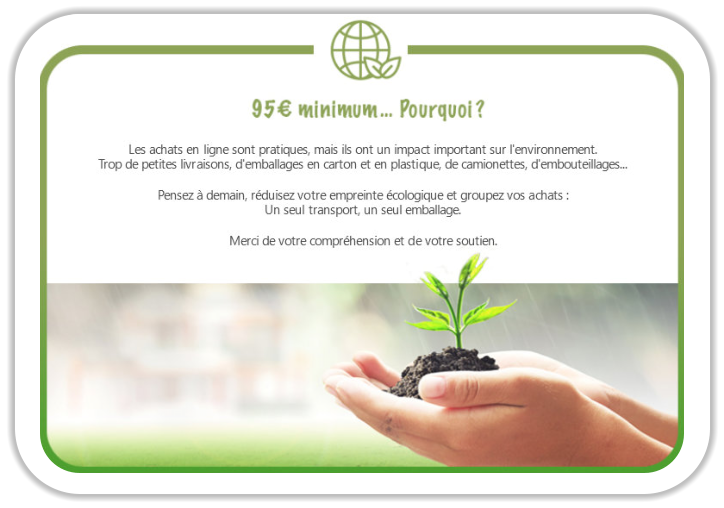 webshop. La commande d’articles sur notre WEBSHOP est possible dès 95€ d’achat.