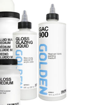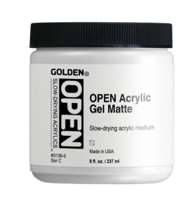 Golden Open mediums & additieven kunnen worden gebruikt om de consistentie en afwerking (glans/mat) van Golden Open acrylverf aan te passen met behoud van hun uitzonderlijke droogtijd