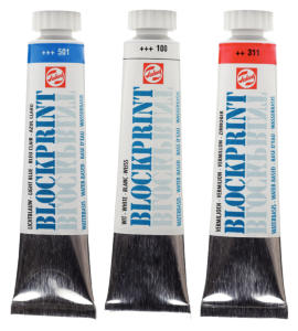 - 3 tubes van 37ml wateroplosbare lino-inkt (rood, geel, blauw)