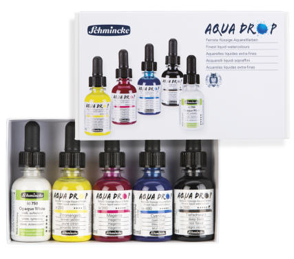 Aquarelle liquide, à base de pigments, très résistante à la lumière, prête à l'emploi et diluable à l'eau