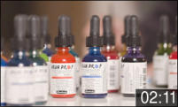 24 couleurs dans un flacon à pipette en plastique de 30 ml.
