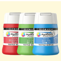 en zeefdrukken, waar System3- acrylkleuren kunnen worden