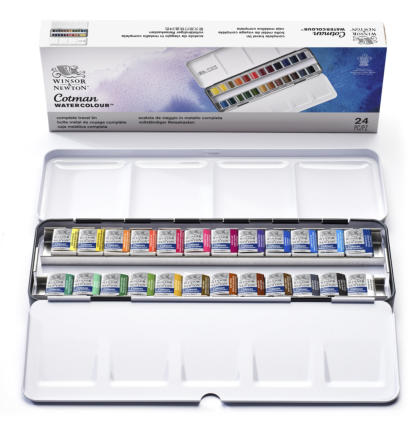 Winsor & Newton Cotman - Complete Travel Tin - aquarelle fine boîte en métal - 24 demi godetsWIN0390645