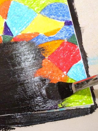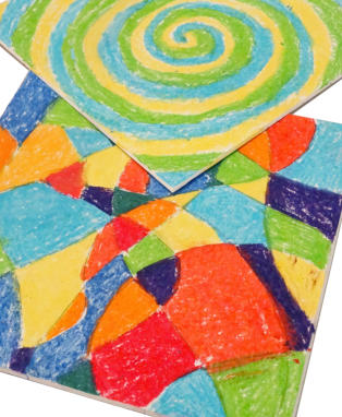 a coloured base with oil pastels