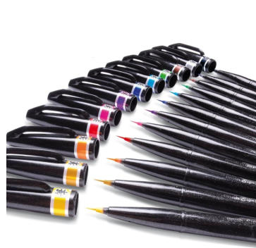 - Brush pen with soft tip- Water-based ink, watersoluble- Variable track width, allows for full and partial loads to be produced.- Ideal for sketches, drawings, manga, calligraphy...