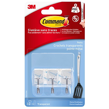 3M Command - transparant haakje met metalen punt - met fixatiestreepje - 225gr max. - 3 stuks
