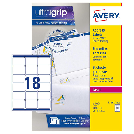 Avery L7161 - laser & inkjet etiketten - 63,5x46,6mm - 18/blad (100 vellen) - ronde hoeken - wit