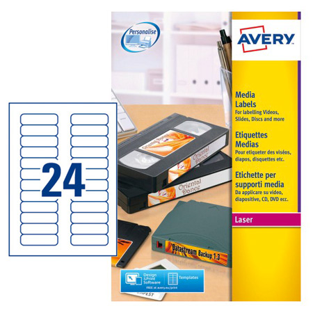 Avery Laser media etiketten - 21,2 x 72 mm - 24/blad - 25 vellen A4 - ronde hoeken - wit