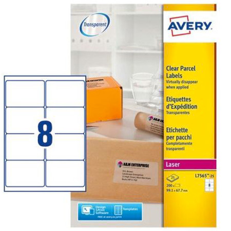 Avery Mailing J8565 - inkjet etiketten - 99,1x67,7mm - 8/blad - 25 vellen A4 - ronde hoeken - transparant