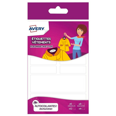 Avery kledingetiketten. Kleur wit. Afmetingen: 4,5 x 1,3cm. 2 vellen met 18 etiketten = 36 etiketten in totaal. Ideaal om al uw kleding en accessoires te merken zoals sjaals, handschoenen en rugzakken. Bestand tegen meerdere wasbeurten en behandelingen in de droger. Onderscheid de spullen van uw kinderen van dat van anderen. Geen strijkijzer of naald en draad meer nodig. |