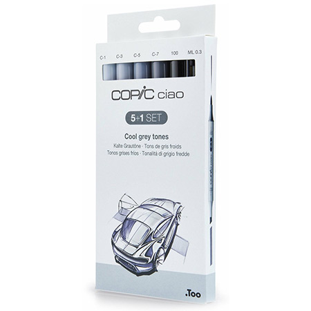Copic Ciao 5+1 Set - kartonnen etui - 5 layout markers + 1 Multiliner stift 0.3 (zwart) - koude grijzen