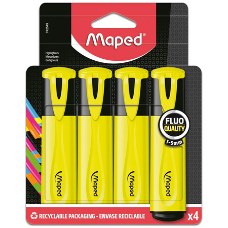Maped Fluo Peps Classic - étui en plastique - 4 surligneurs jaunes
