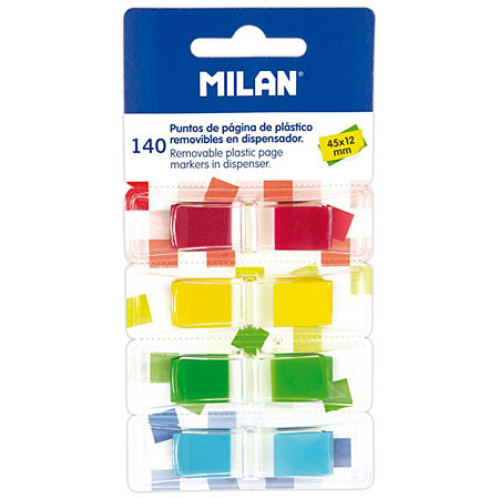 Milan Pakje van 140 zelfklevende index tabs in plastic - 4 kleuren - met dispensers - 45x12mm