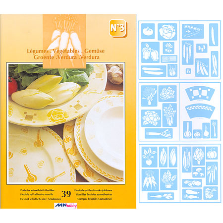 Peacock Set van 39 flexibele zelfklevende sjablonen - 4 formaten - groenten