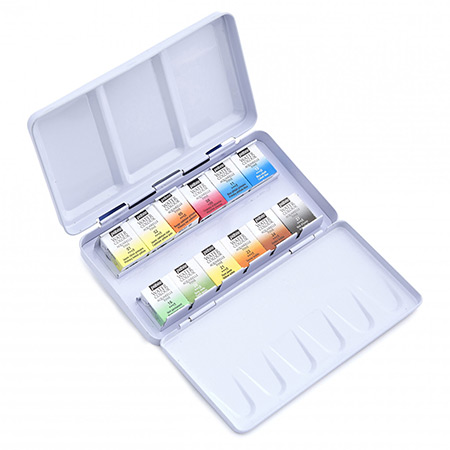 Contient un assortiment de 12 demi godets d'aquarelle fine.