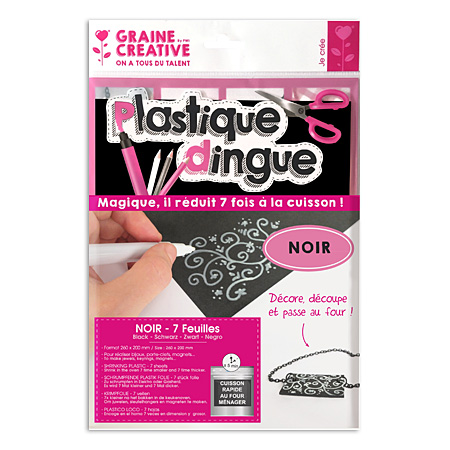 Graine Créative Plastique Dingue - schrink plastic - pack of 7 sheets 20x26cm - black